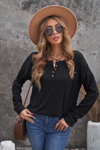 Buttoned V-Neck Flounce Sleeve Midi Dress