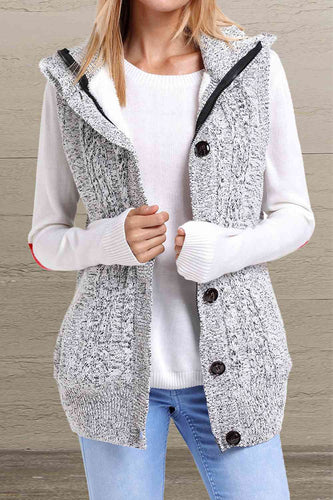Button and Zip Closure Hooded Sweater Vest