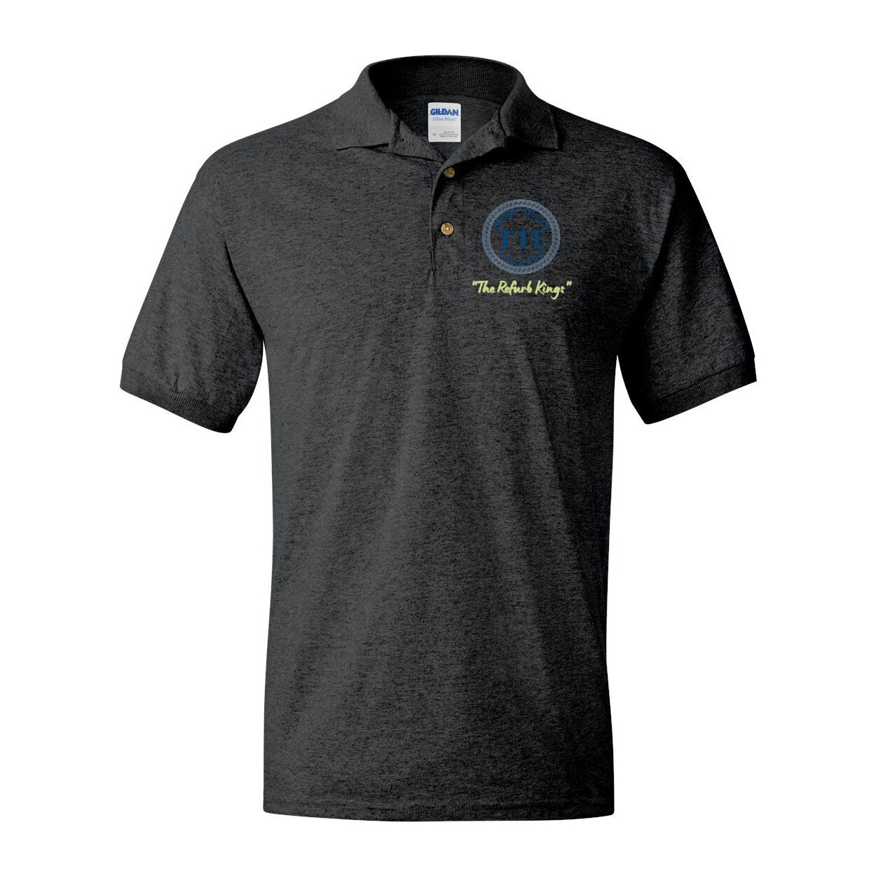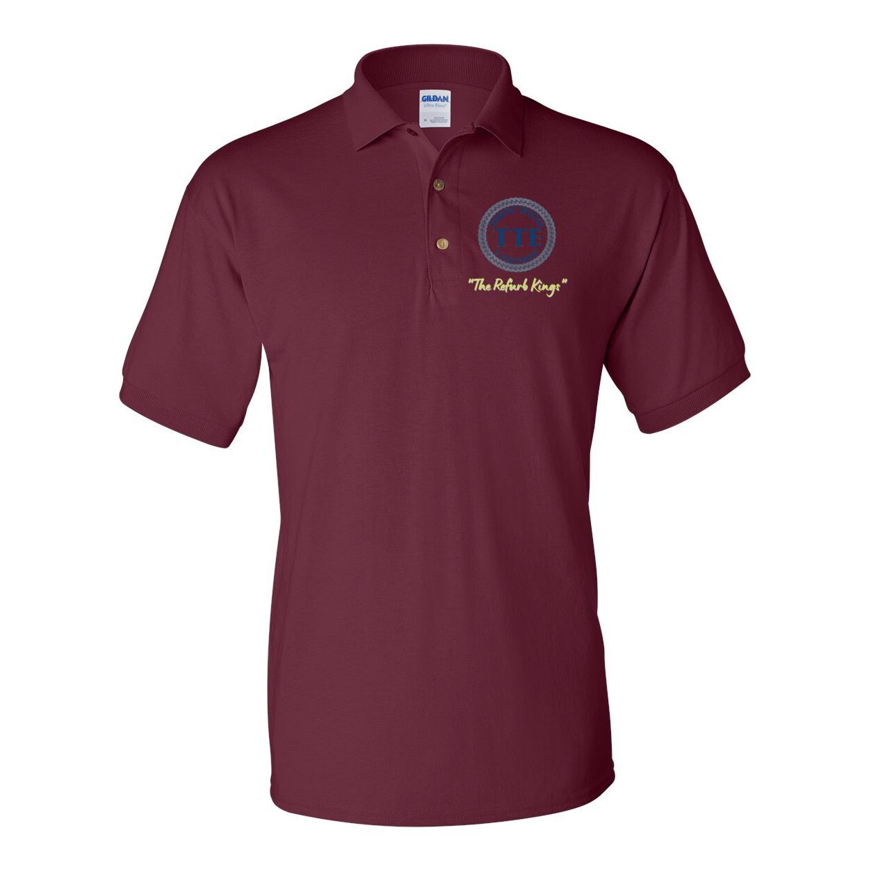 6.0 oz., pre-shrunk 50/50 cotton/polyester knit DryBlend technology delivers moisture-wicking propertiesContoured welt collar cuffs Three woodtone buttons on a clean-finished placket with a reinforced boxHeat transfer labelDouble needle bottom hemQuarter-turned