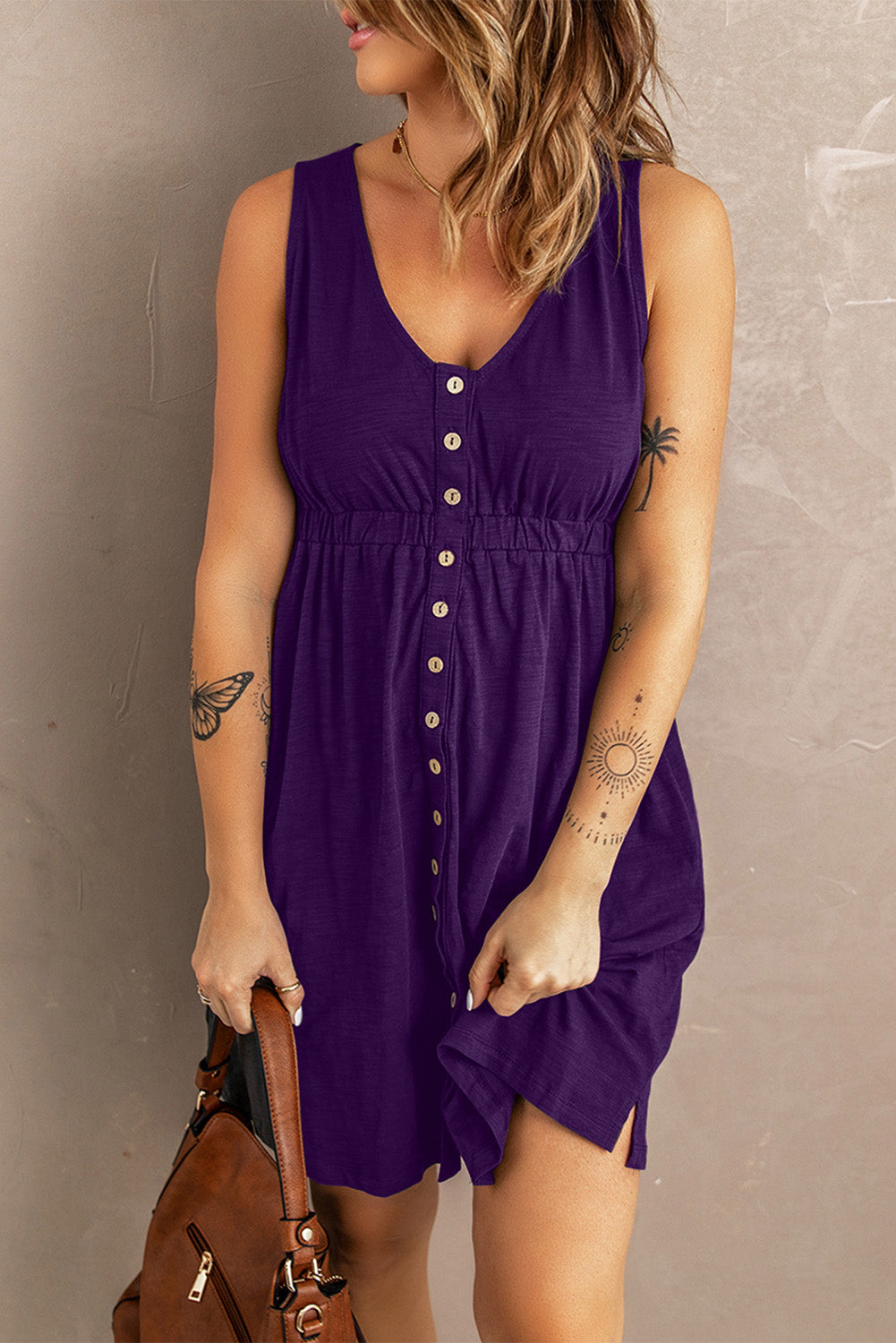 This sleeveless dress is a casual style that you can't miss. The empire waist and slit add a chic touch to thegenerallook, making it suitable for both work and play.