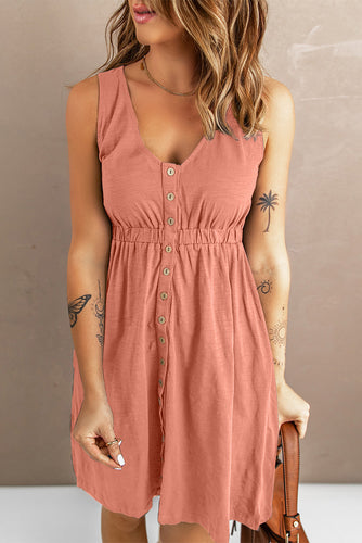 Button Front Empire Waist Sleeveless Slit Magic Dress
